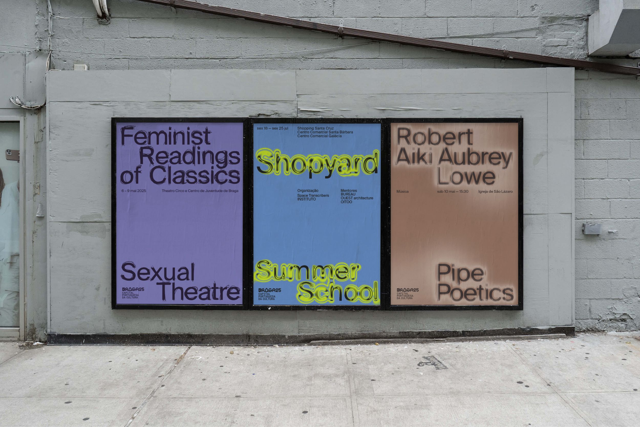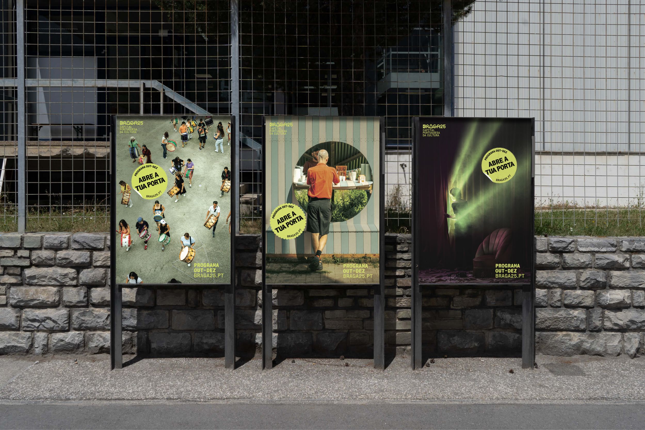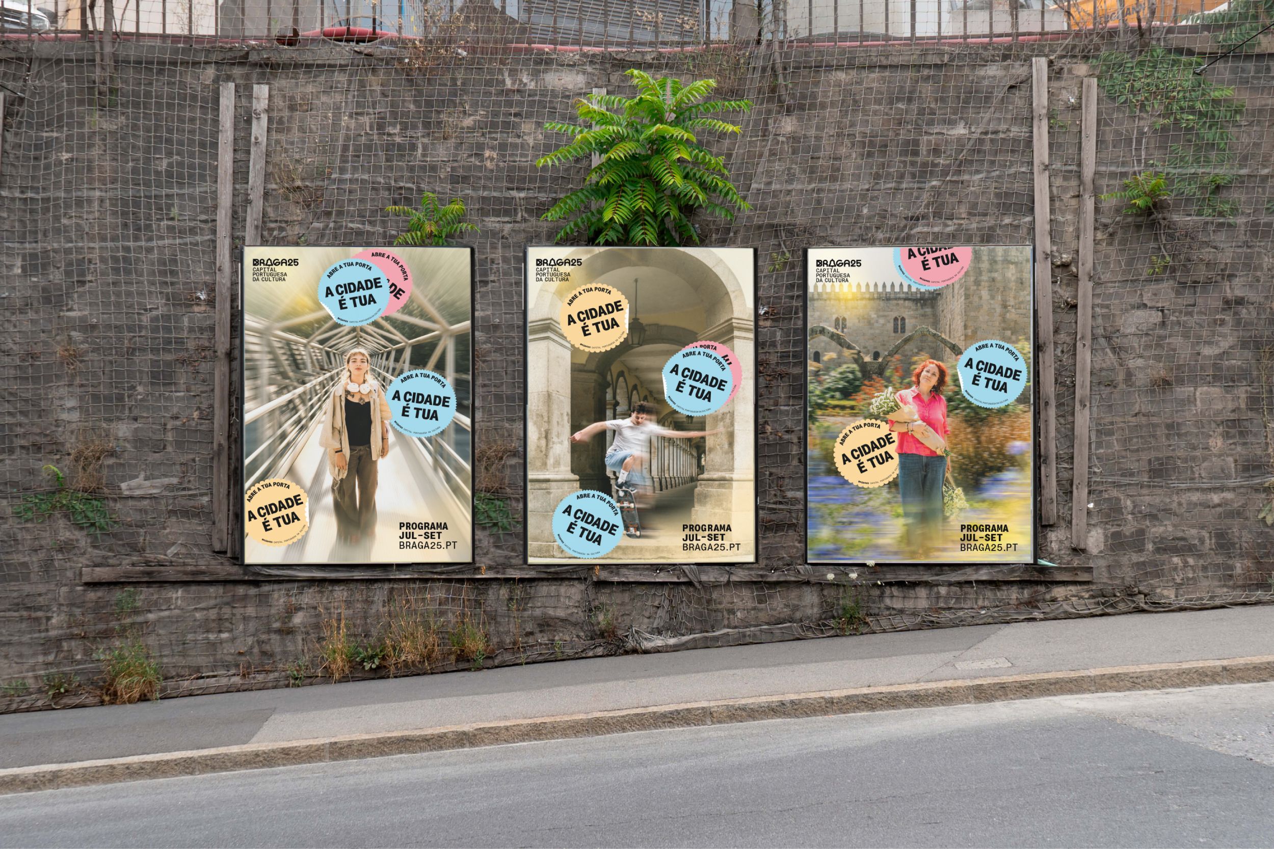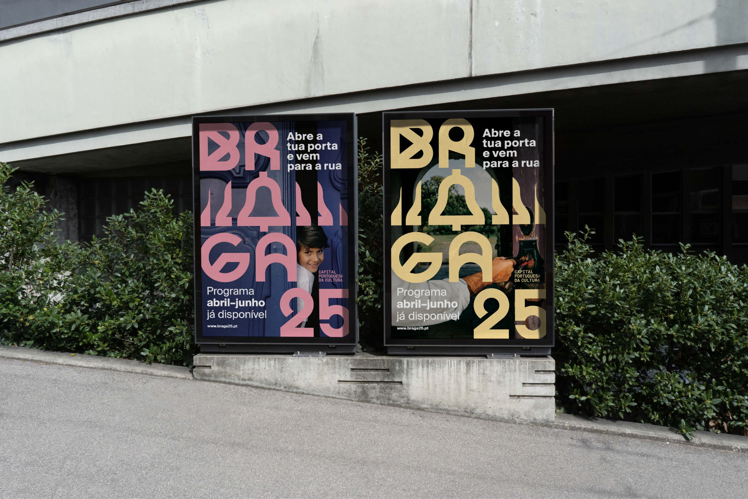 More than a static visual identity, the graphic system for Braga 25 – Portuguese Capital of Culture was conceived as a critical communication tool. Rather than creating an image from scratch, the project required the ability to listen to an existing graphic legacy and project it into a new institutional, cultural, and temporal context. The central challenge was to articulate the visual heritage of Braga’s bid for European Capital of Culture 2027 with the city’s newly implemented institutional identity.