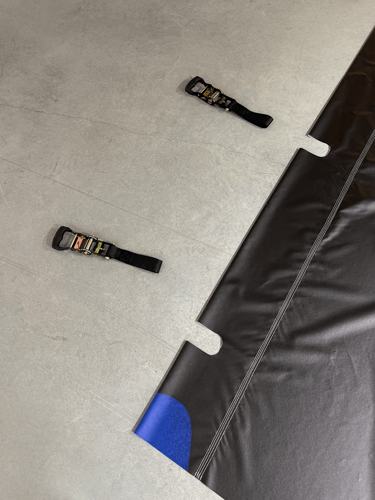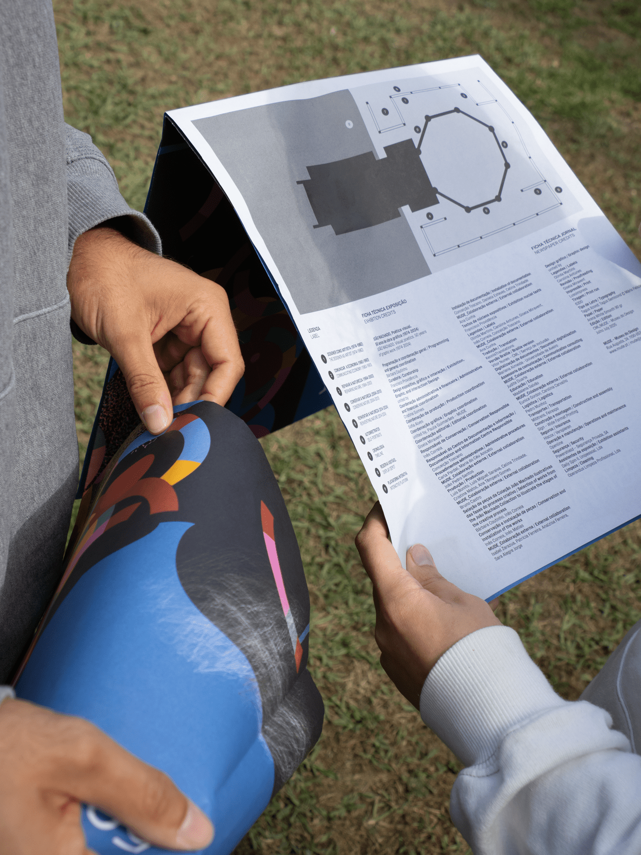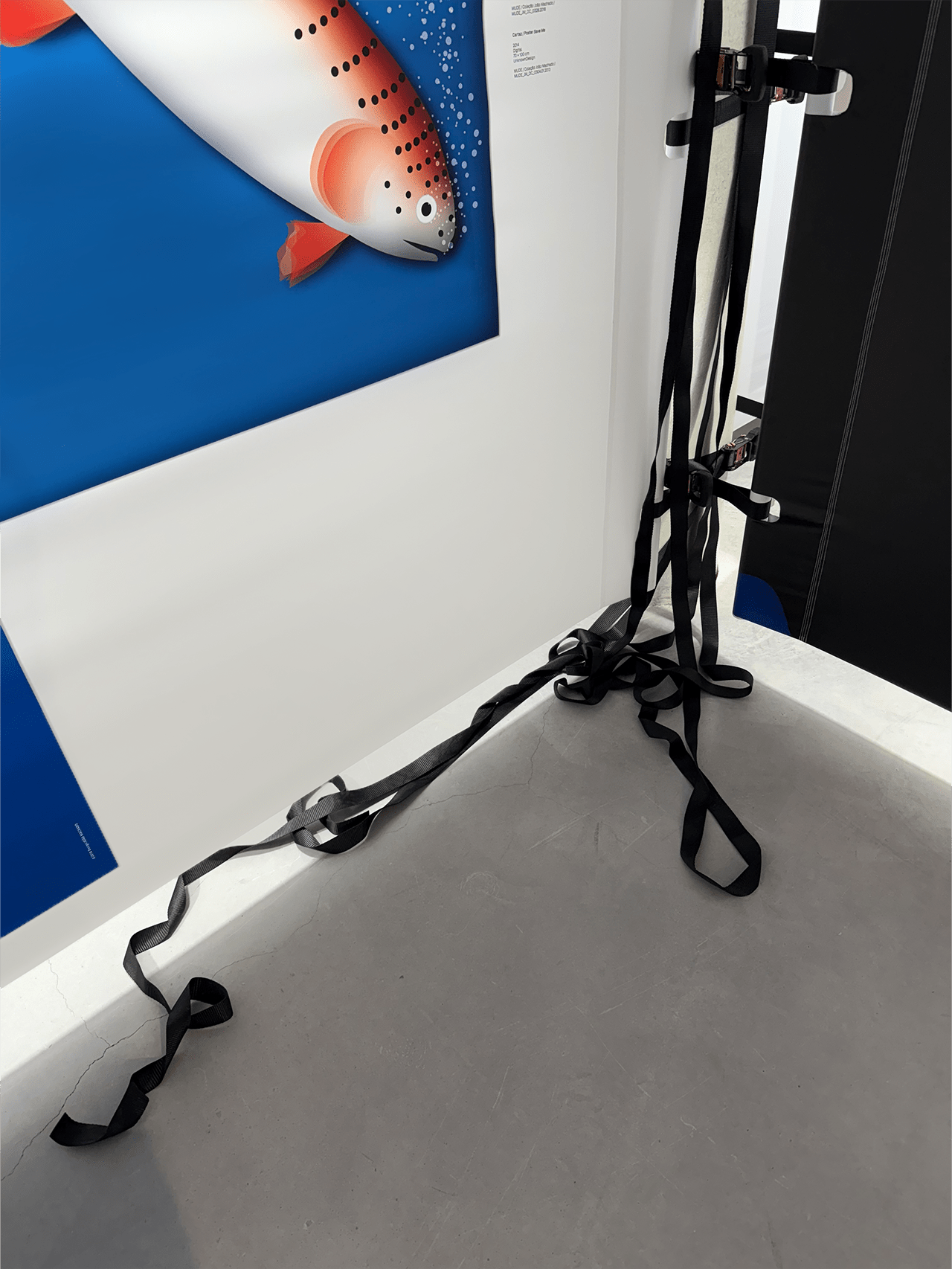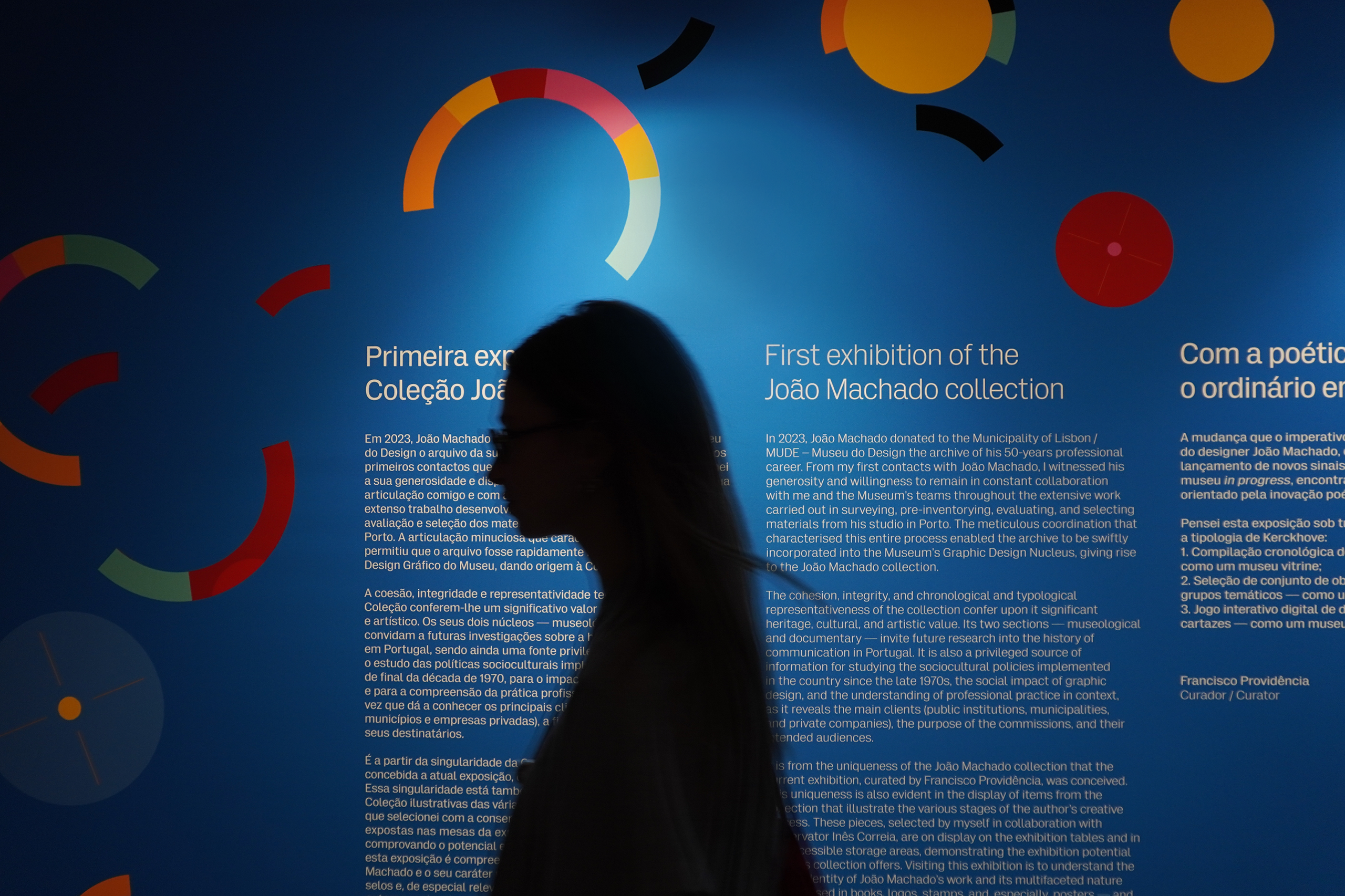 In dialogue with the building, the exhibition unfolds on a single level, organized around a vast double-height space that places it in direct dialogue with the MUDE permanent exhibition, located on the lower floor. A large continuous canvas surface extends horizontally, structured along the column system of the open-plan hall. This element configures new spaces and accommodates titles, curatorial and contextual texts, as well as a compilation of graphic works.
