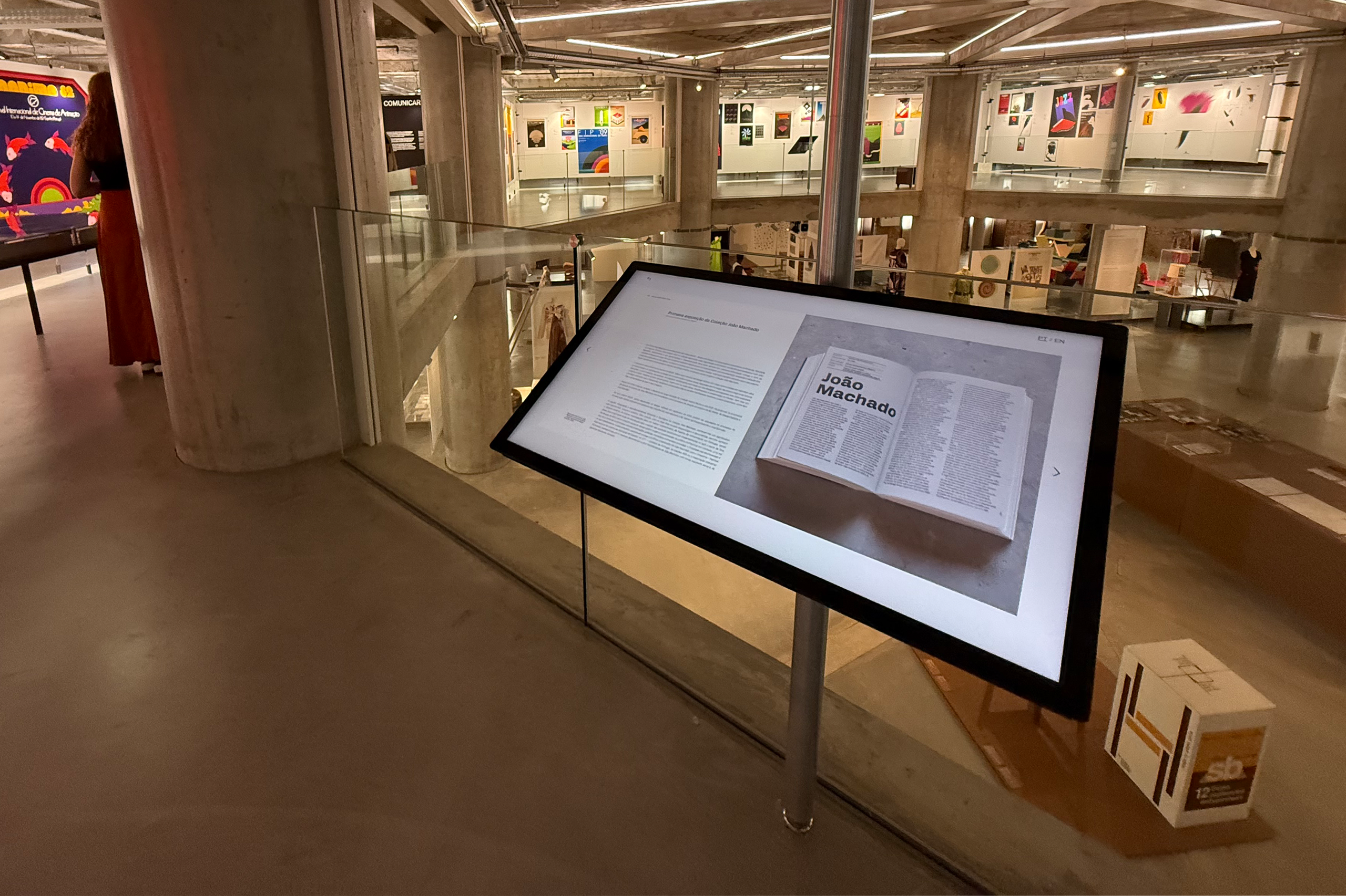 Complementing the exhibition, a series of supports house digital systems for exploring additional content, presenting “moving” posters, and an exploratory digital game in which visitors can interact with and deconstruct some of Machado’s posters.