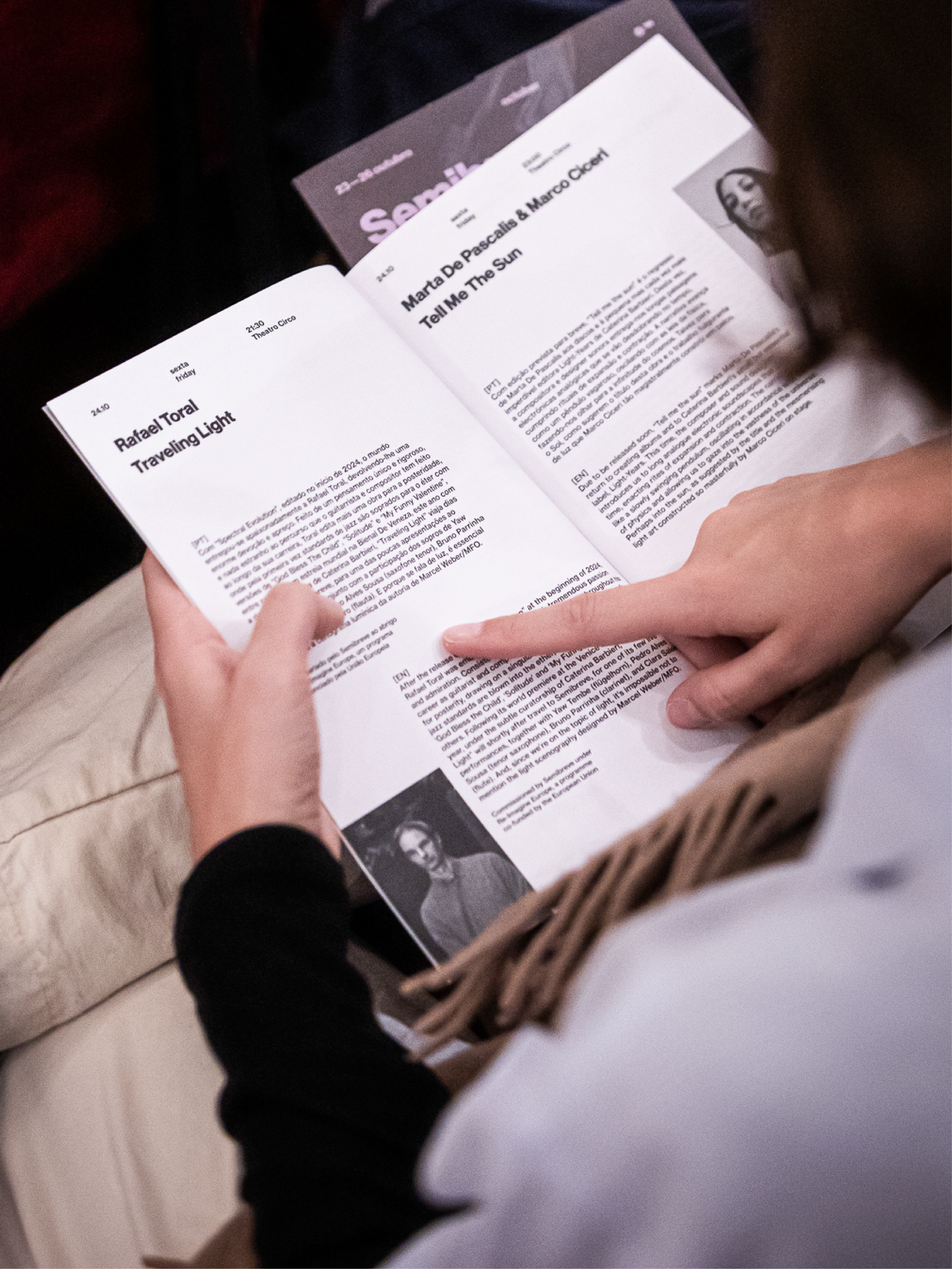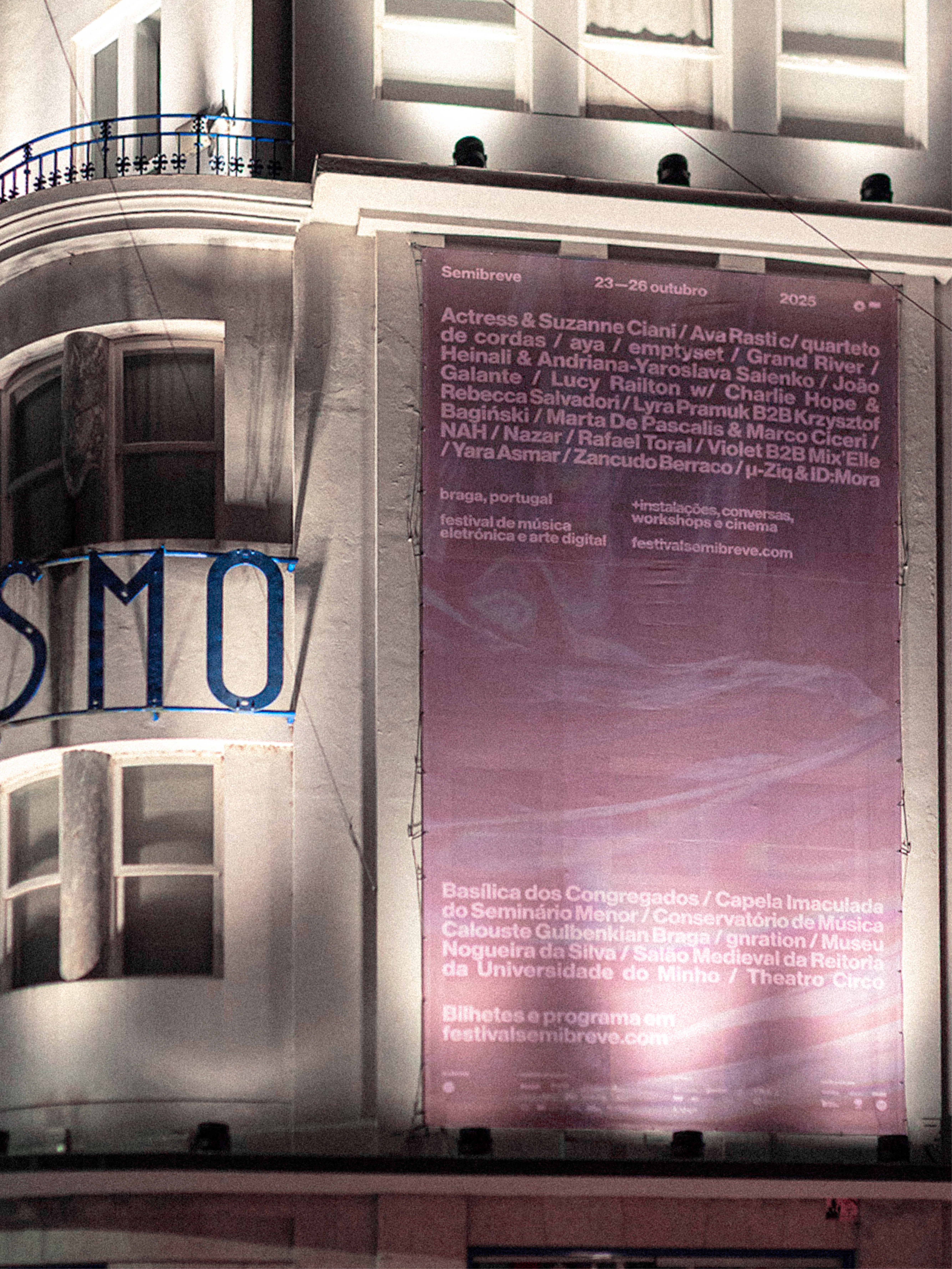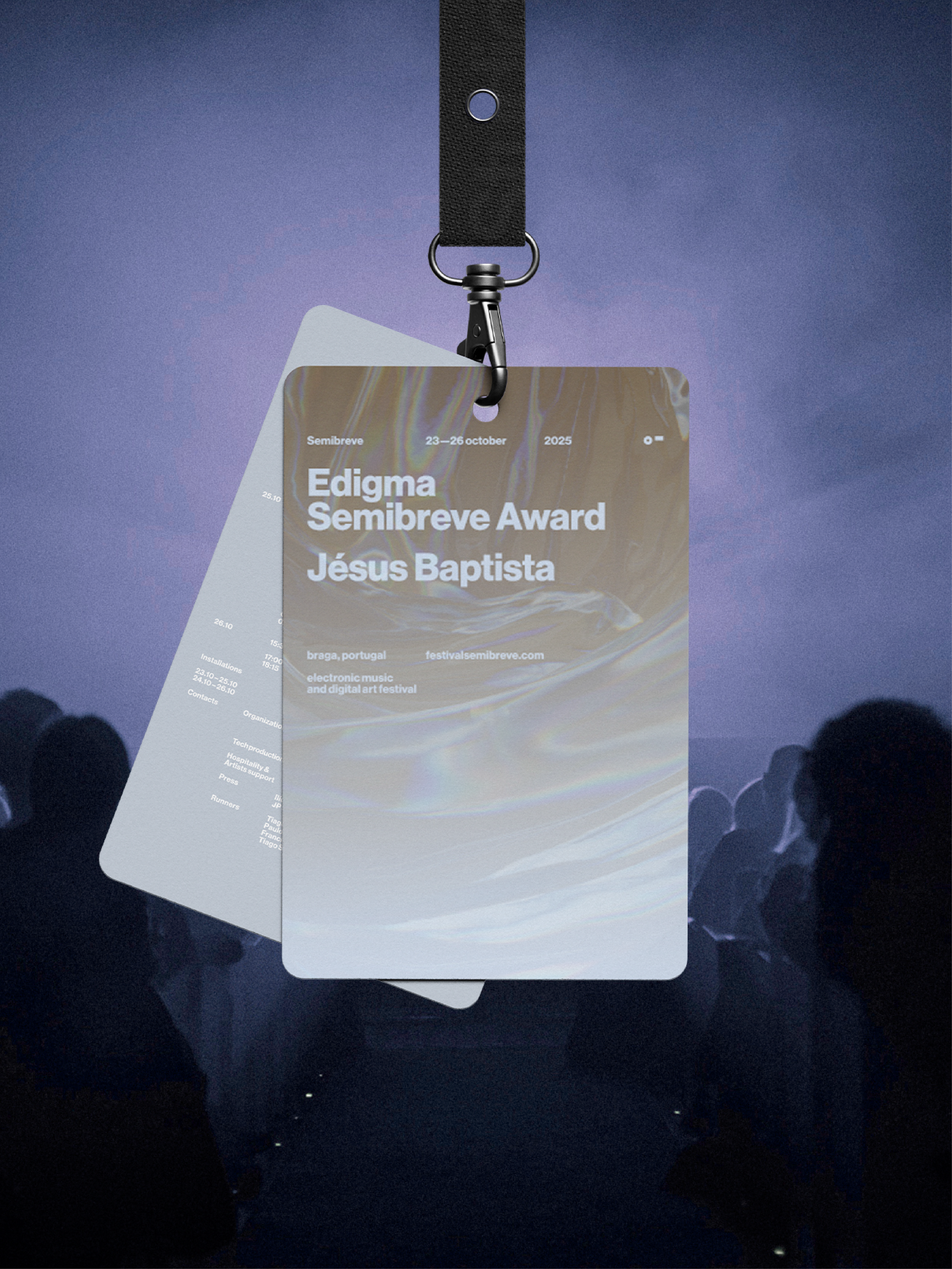 The graphic identity of the 2025 edition set out to visually reflect the relationship between sound, space, and perception. This year, information moved away from being a static element and adopted an experimental behaviour, responding to music and its rhythms. By allowing graphic elements to be affected by sound, communication became part of the festival’s artistic experience. The visual identity thus became another field of experimentation, in direct dialogue with Semibreve’s musical and conceptual programme.